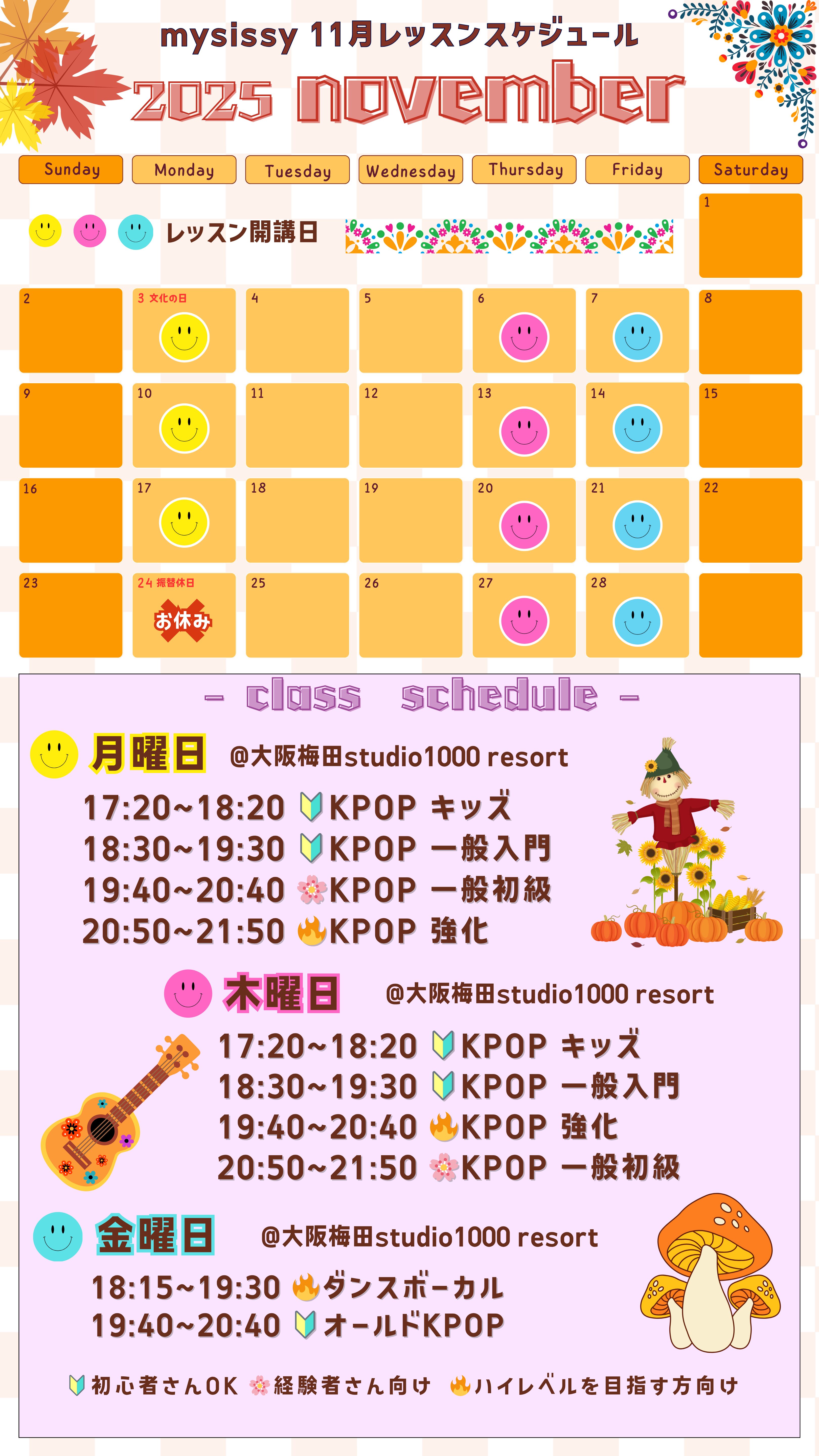◉木曜日 全クラス studio1000 resort 3F「HONOLULU」